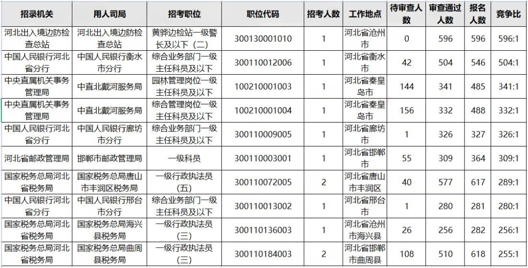 国考报名第7天,河北地区报名*高竞争比596:1报名高峰期来临!