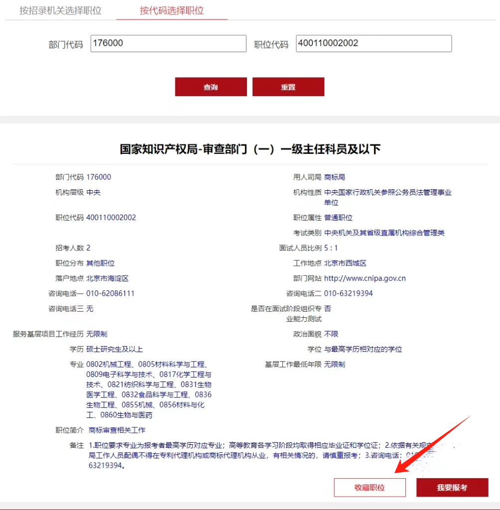 点击查询后,选择收藏职位