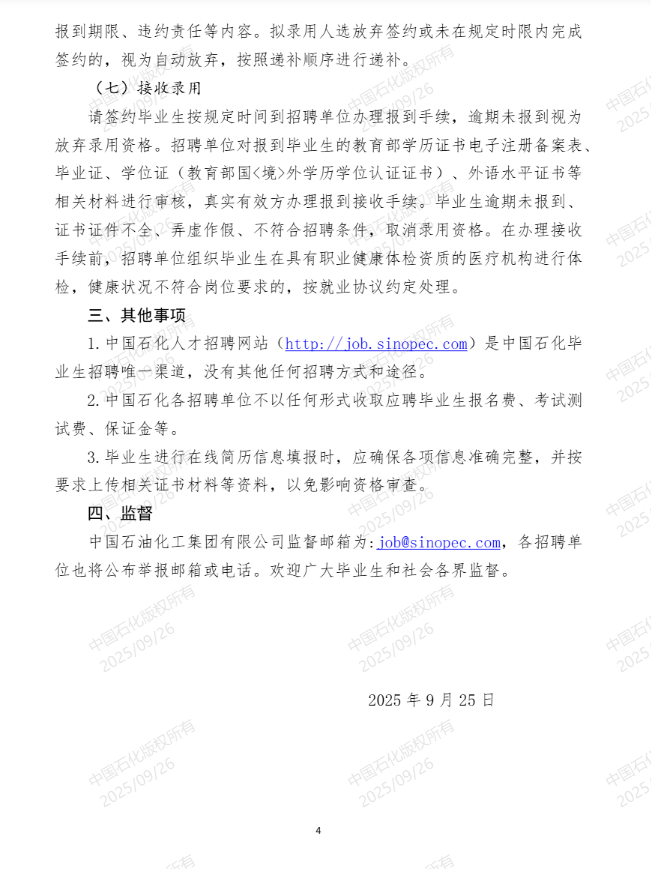 中国石化2026年度毕业生招聘公告